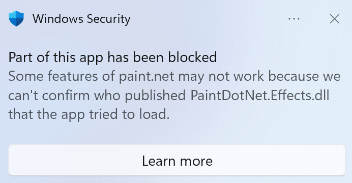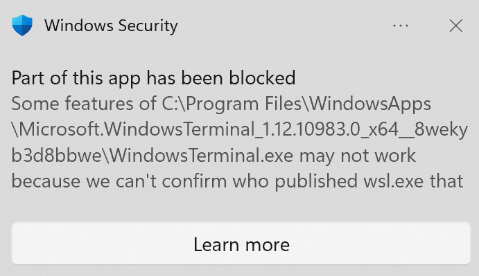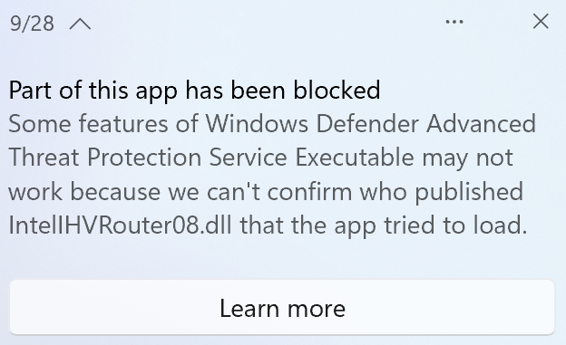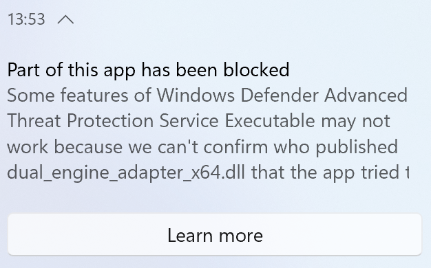 I evaluated SAC on two test clients over a period of several days. For both clients, I started with the “Evaluation” mode as recommended by Microsoft. After that, I performed everyday tasks on both clients, such as surfing the Internet and working in Office. One day later I checked the status and the evaluation on both clients. The state was set to “Off” without any feedback. The evaluation mode is unfortunately not really transparent at the moment (yet), because you can’t really track why Microsoft thinks you are not a good candidate, since there is neither a log, report or any documentation about it. So I reinstalled both clients and set SAC to “On” right after the fresh setup to see which applications are blocked to understand why the evaluation was negative (not a good candidate) during the first test. I was enlightened after the first few seconds, because the first block message from Smart App Control appeared. SAC immediately reported itself because of unknown “dll’s” used by the Microsoft Defender for Endpoint Service. I set up both test clients with Autopilot and Microsoft Intune and I always use Microsoft Defender for Endpoint. However, I did not expect that one of Microsoft’s own services would be blocked. Surprisingly, other Microsoft products such as Windows Terminal and Paint.Net were also blocked. The Windows Terminal could still be used despite messages, but Paint.Net could not be started at all. If you take a look at the Microsoft Feedback Hub and filter for problem reports regarding “Smart App Control”, you will see that other trusted applications such as an Intel driver update, WSL (Windows Subsystem for Linux) or Oracle are currently blocked as well. It was also interesting to observe that the admin tool MakeMeAdmin could be used at first, but not anymore a few days later.