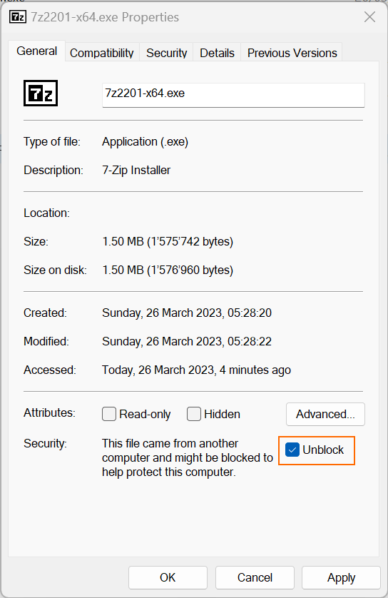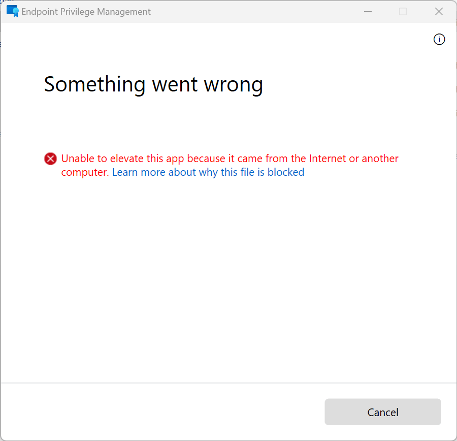 There is a behavior in Windows that assigns an attribute to files downloaded directly from the Internet that prevents their execution until they are verified. If this is enabled, the installation with EPM will fail.
