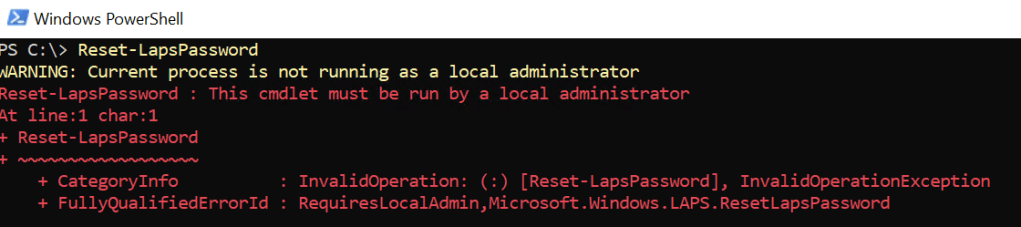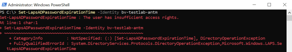 As expected, the Windows LAPS password cannot be read: